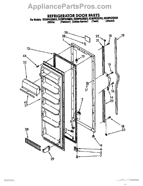 Parts for Whirlpool ED20PKXSW03: 05 - Refrigerator Door Parts
