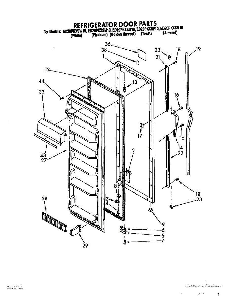Parts for Whirlpool ED20PKXSW10: 05 - Refrigerator Door Parts