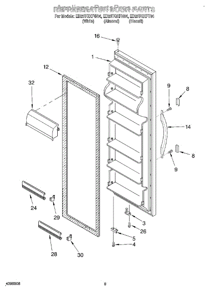 Parts for Whirlpool ED20TQXFT04: 06 - Refrigerator Door Parts