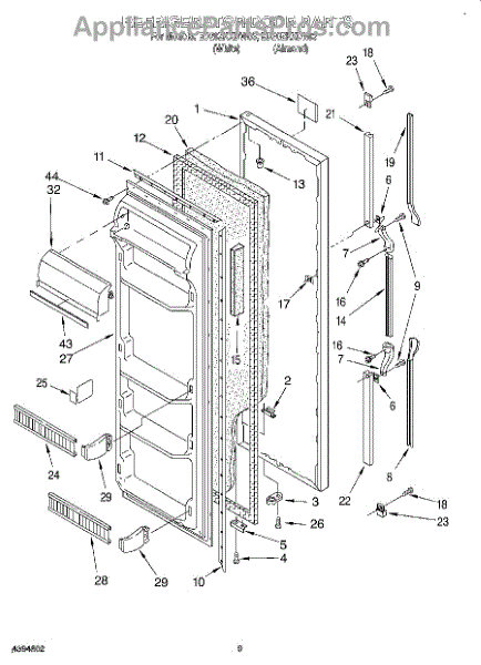 Right hand side. Color: White. It measures about 3 inches high by 4 inches deep. For left hand side order WP2196190. For kit with LH and RH end cap order 4388286.