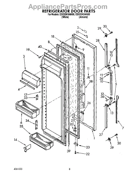 Parts for Whirlpool ED22DKXAW00: 07 - Refrigerator Door Parts