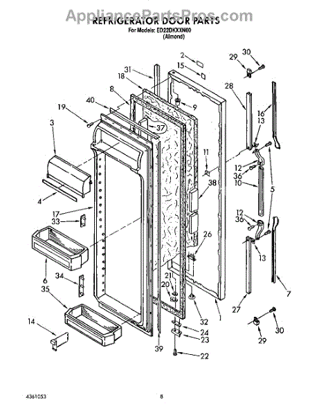 Parts for Whirlpool ED22DKXXW00: 07 - Refrigerator Door Parts