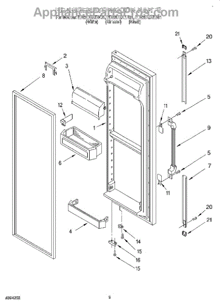 The Door Shelf is an OEM part for Whirlpool refrigerators. It provides additional storage space within the refrigerator door, allowing for the organization of smaller items like condiments, jars, and bottles.