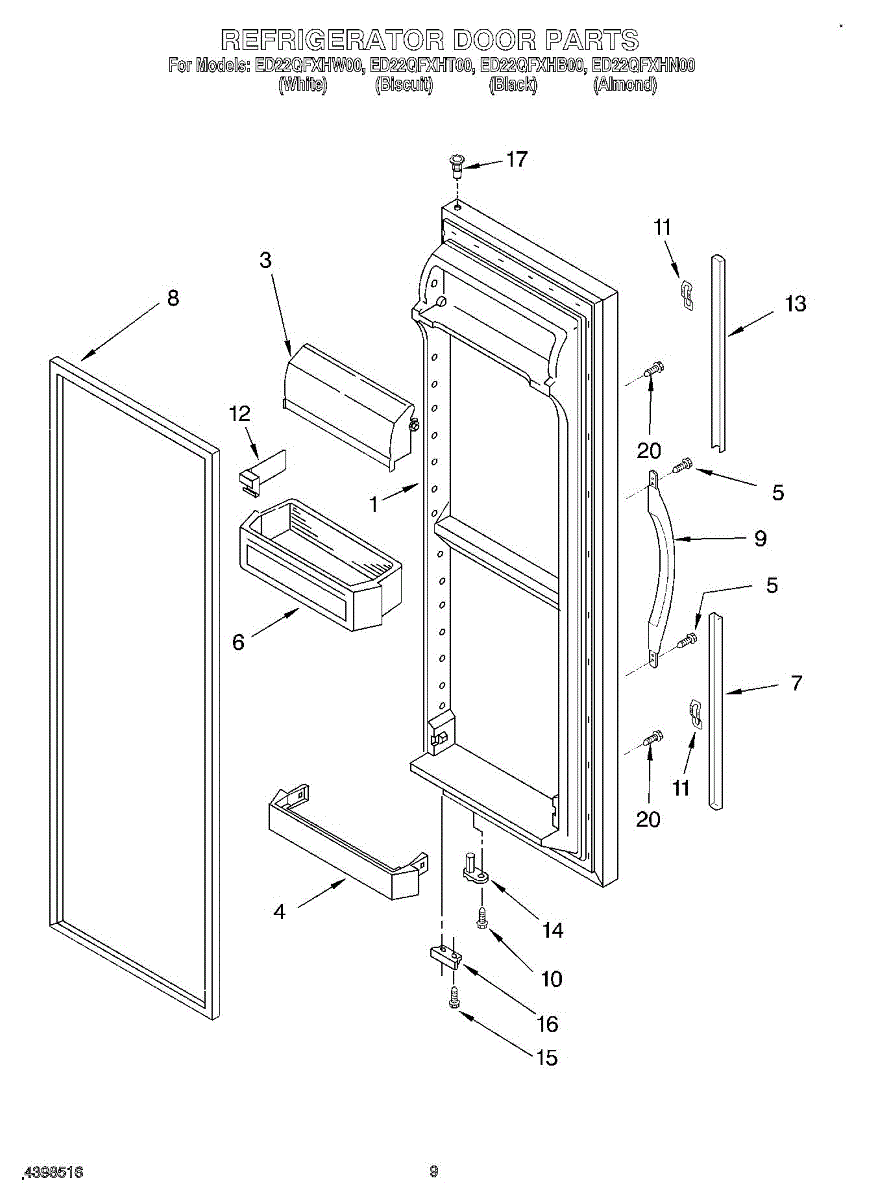 Door assembly, incluces inner and outer door panels along with door gasket.