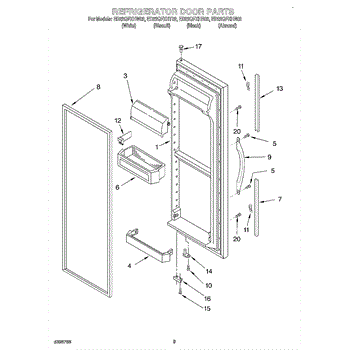 Door assembly, incluces inner and outer door panels along with door gasket.