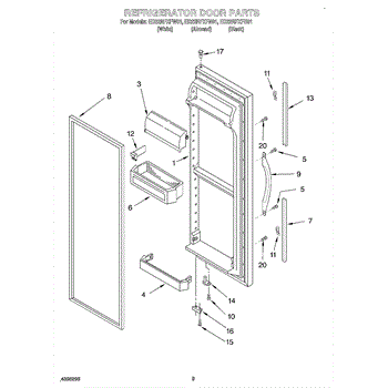 Door assembly, incluces inner and outer door panels along with door gasket.