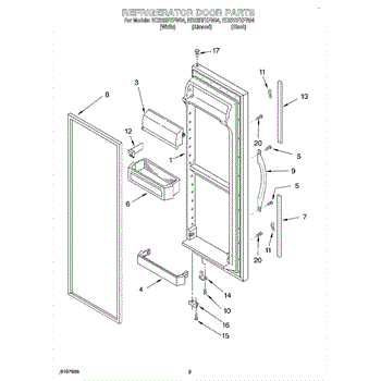 Door assembly, incluces inner and outer door panels along with door gasket.