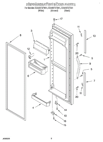 Door assembly, incluces inner and outer door panels along with door gasket.