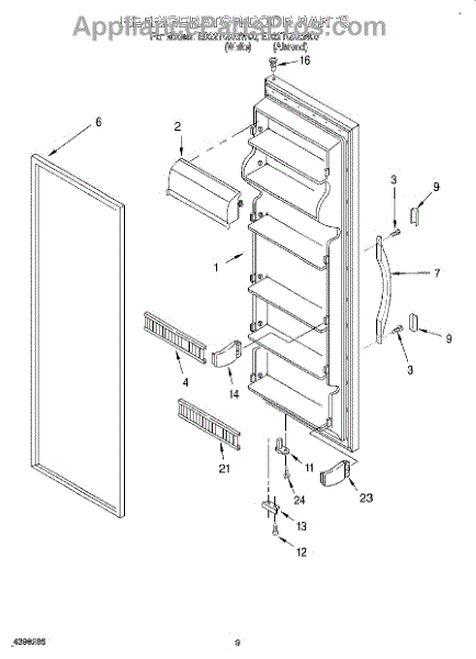The Compartment Door is an OEM component for Whirlpool and Kenmore built-in refrigerator models. It provides access to organized storage in the fridge's fresh food compartment. The compartment door measures approximately 15” long by 6” wide.
