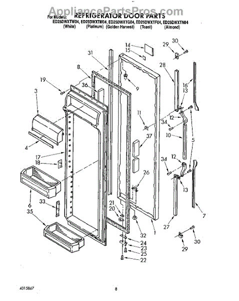 Parts for Whirlpool ED25DWXTN04: 07 - Refrigerator Door Parts