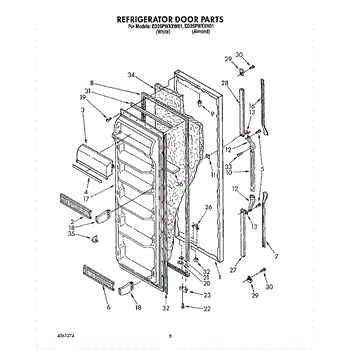 Parts for Whirlpool ED25PWXXW01: 07 - Refrigerator Door Parts