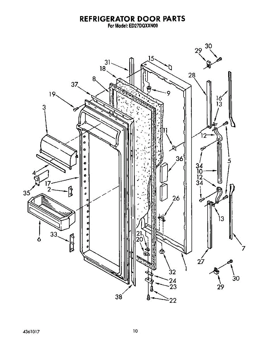 This screw is used to secure the handle end cap to the center of the door. The screw size measures 8-18 x 1/2 inches.