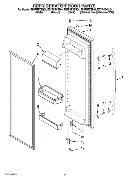 Parts for Whirlpool ED2FHEXST04: 06 - Refrigerator Door Parts