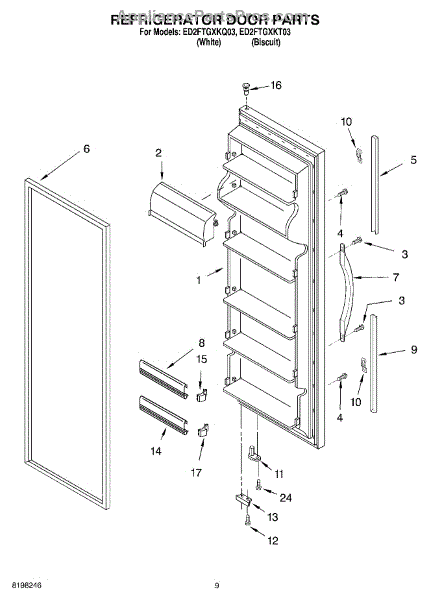 Parts for Whirlpool ED2FTGXKT03: 06 - Refrigerator Door Parts
