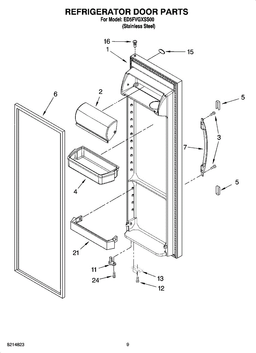 The Compartment Door is an OEM component for Whirlpool and Kenmore built-in refrigerator models. It provides access to organized storage in the fridge's fresh food compartment. The compartment door measures approximately 15” long by 6” wide.