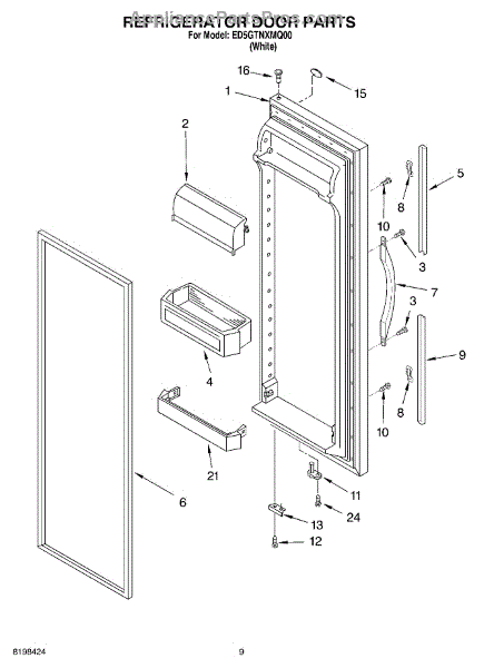 The Refrigerator Door Gasket (Beige) is an OEM replacement part specifically designed for Whirlpool-brand refrigerators. The gasket is responsible for preventing warm air and moisture from entering the refrigerator when doors close. The gasket measures approximately 19 ¼” wide x 62" tall.