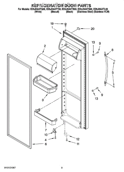 Parts for Whirlpool ED5JHAXTL00: 06 - Refrigerator Door Parts