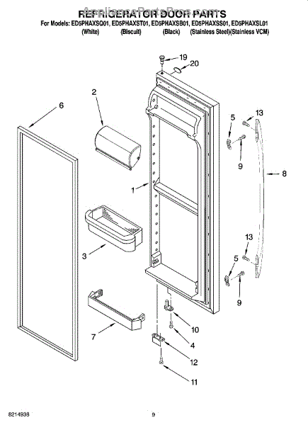 Parts for Whirlpool ED5PHAXSQ01: 06 - Refrigerator Door Parts