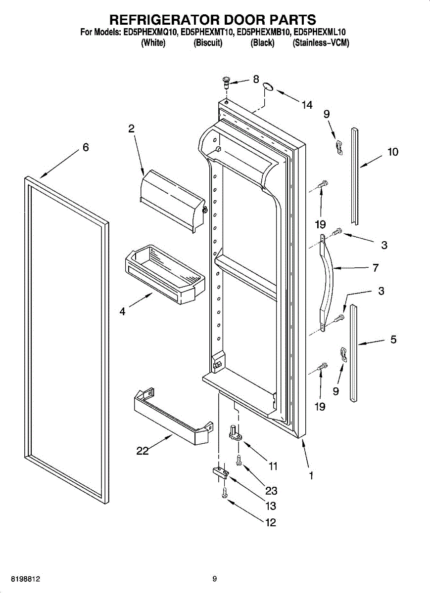 White. For almond order 2186649N. For black order WP2186649B.