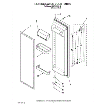 The Compartment Door is an OEM component for Whirlpool and Kenmore built-in refrigerator models. It provides access to organized storage in the fridge's fresh food compartment. The compartment door measures approximately 15” long by 6” wide.