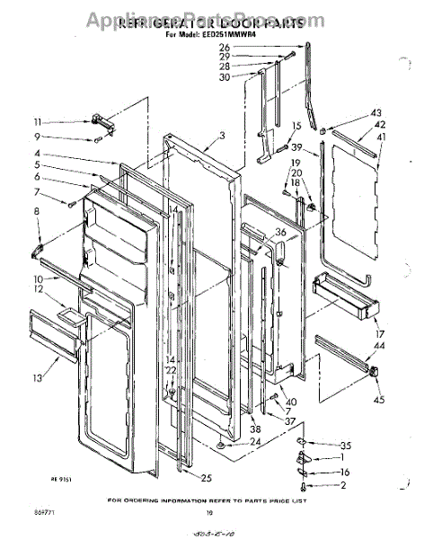 Parts for Whirlpool EED251MMWR4: 10 - Refrigerator Door Parts