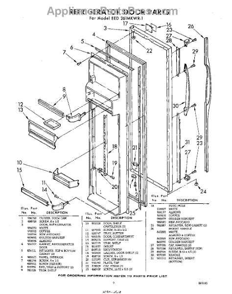 Parts for Whirlpool EED261MKWR1: 09 - Refrigerator Door Parts