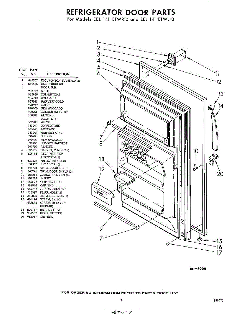 Parts for Whirlpool EEL141ETWR0: 07 - Refrigerator Door Parts