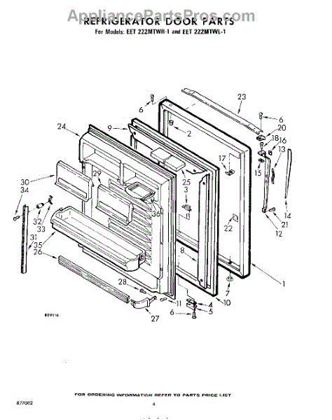 Parts for Whirlpool EET222MTWR1: 04 - Refrigerator Door Parts