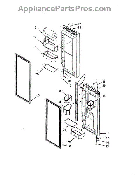 A vertical mullion assembly that restores the finished trim along the refrigerator door edge and covers the gap between doors for a clean appearance. Replaces cracked, broken, or loose mullion trim to improve fit and finish. What it does: