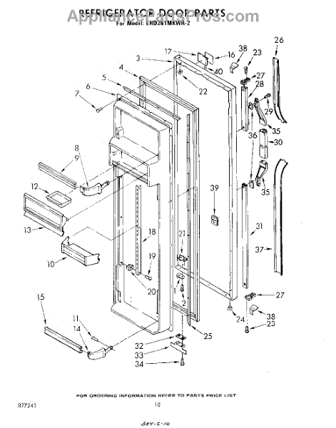 Parts for Whirlpool EHD261MKWR2: 10 - Refrigerator Door Parts