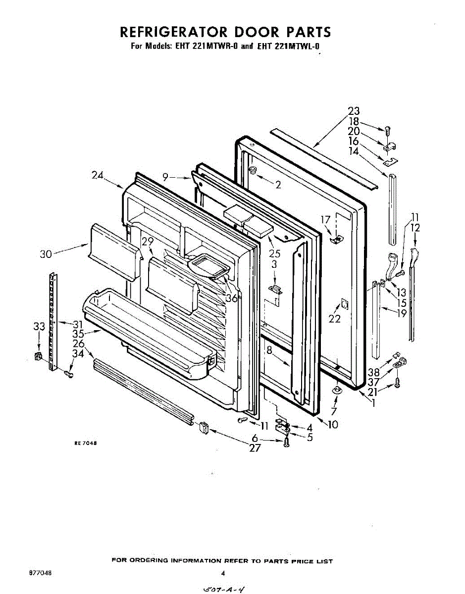 Parts for Whirlpool EHT221MTWR0: 04 - Refrigerator Door Parts