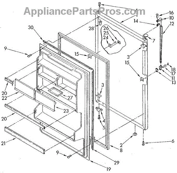 Parts for Whirlpool ET18GKXSF05: Refrigerator Door Parts