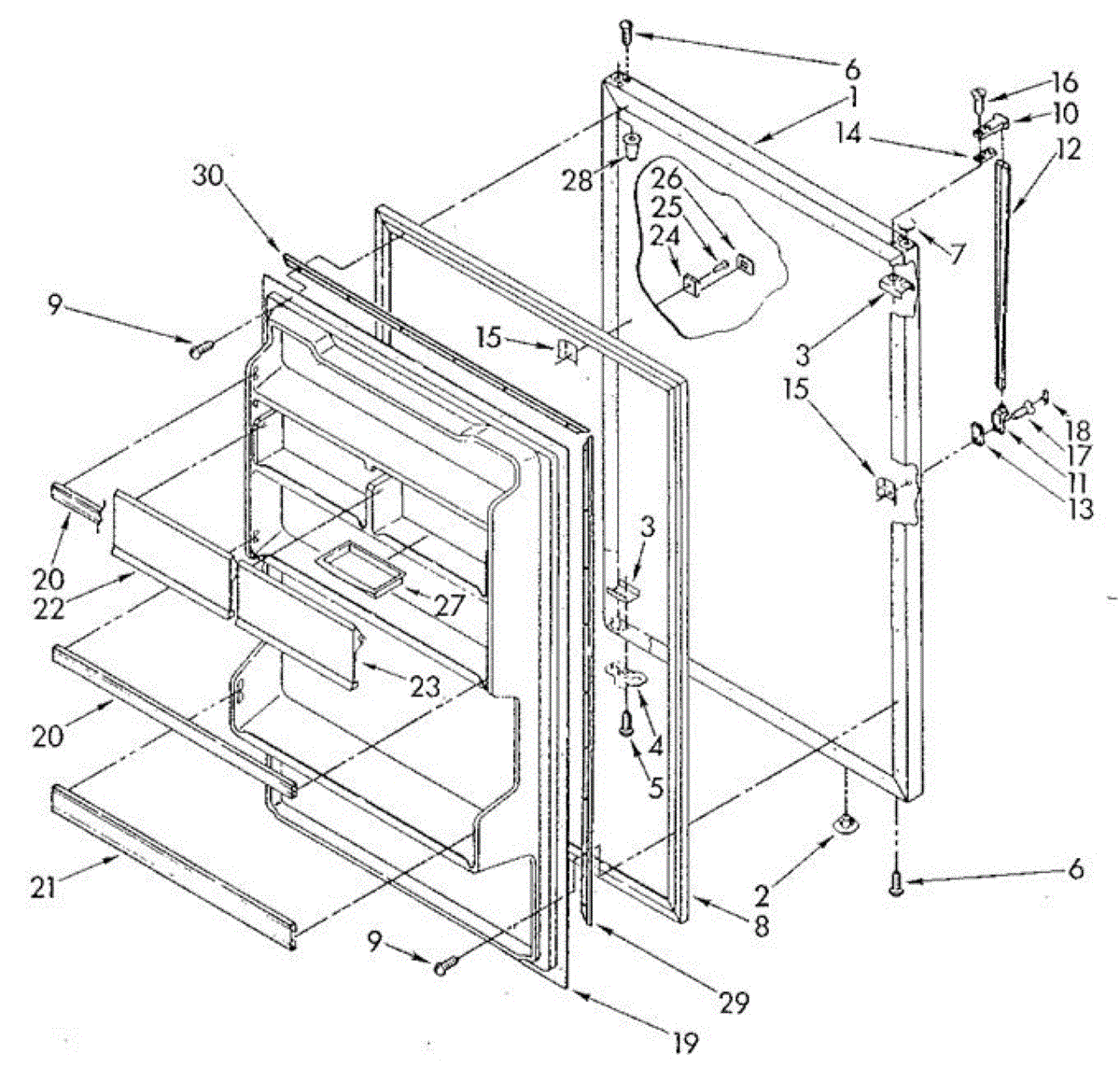 Parts for Whirlpool ET18GKXSM04: Refrigerator Door Parts