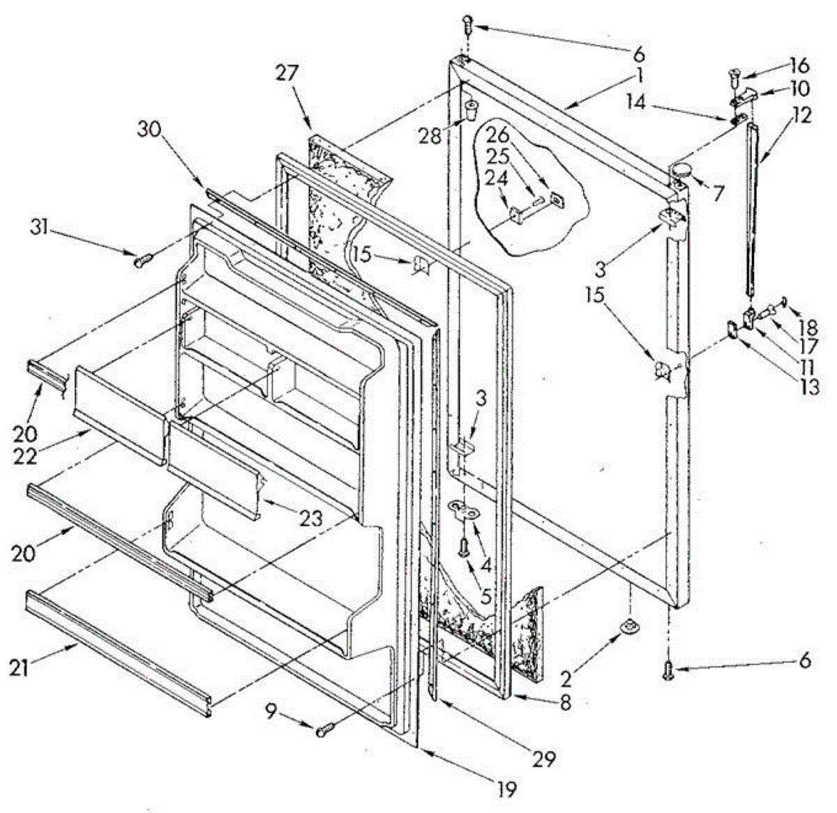 Parts for Whirlpool ET18GKXSM0B: Refrigerator Door Parts