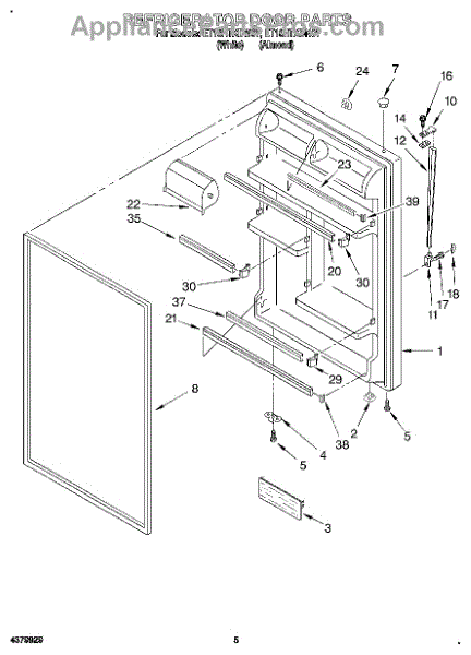 Refrigerator door assembly with gasket-white.