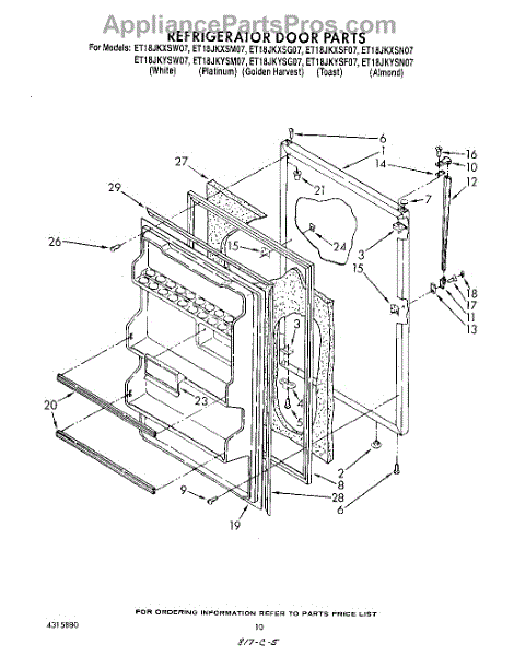 Parts for Whirlpool ET18JKYSG07: 08 - Refrigerator Door , Not Illustrated Parts