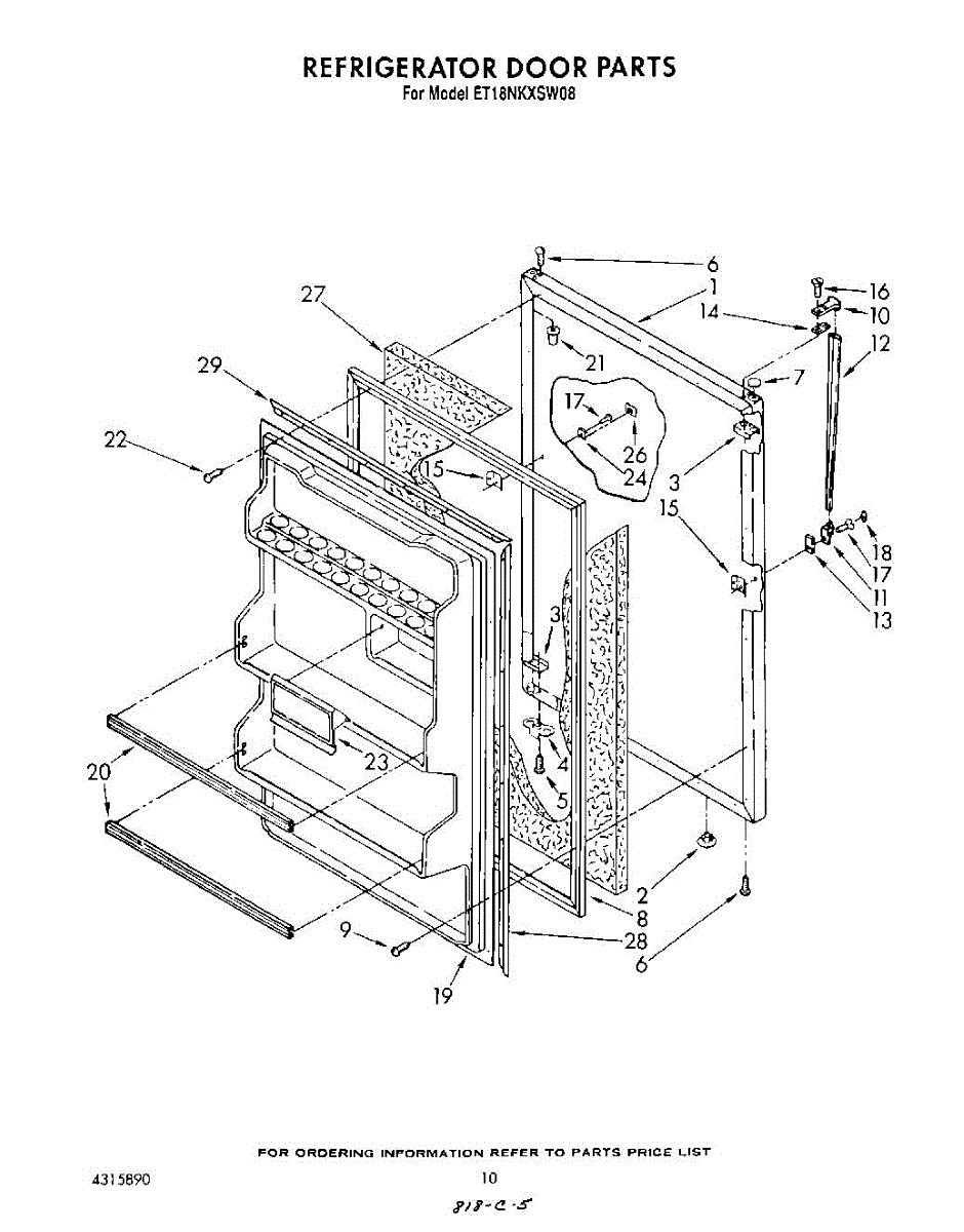 This screw is used to secure the handle end cap to the center of the door. The screw size measures 8-18 x 1/2 inches.