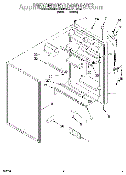 Refrigerator door assembly with gasket-white.