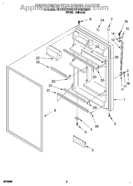 Refrigerator door assembly with gasket-white.