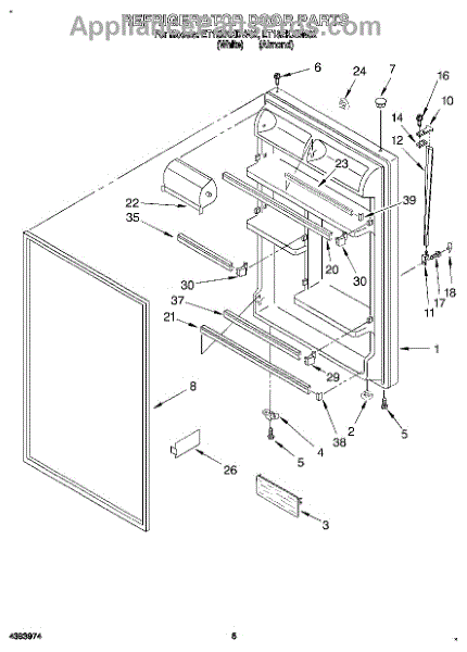 Refrigerator door assembly with gasket-white.