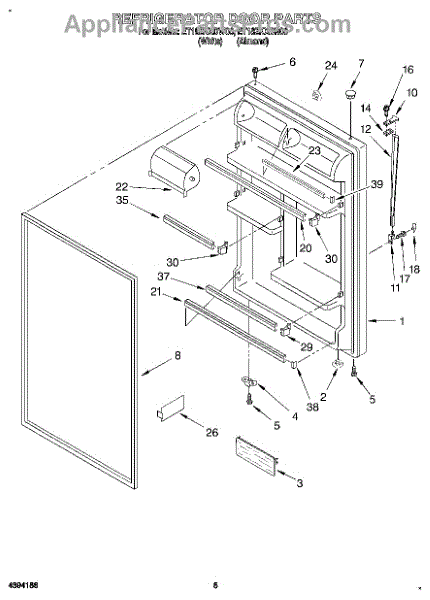 Parts for Whirlpool ET18ZKXDW06: 04 - Refrigerator Door Parts