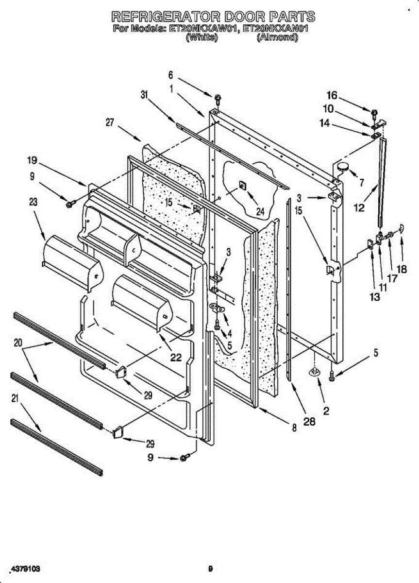 Parts for Whirlpool ET20NKXAW0: Refrigerator Door Parts