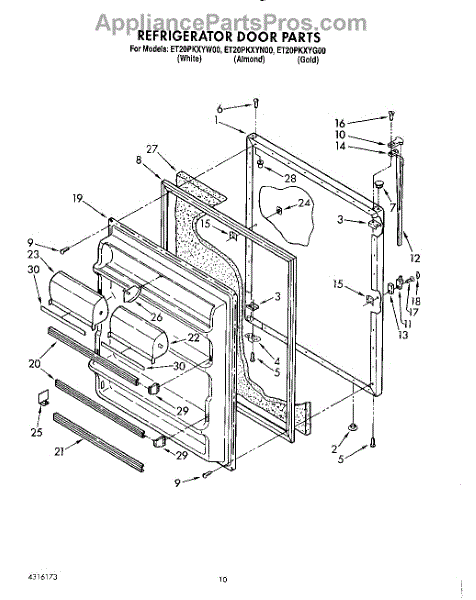 Parts for Whirlpool ET20PKXYG00: 08 - Refrigerator Door, Lit / Optional Parts