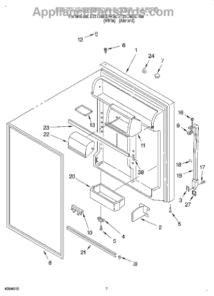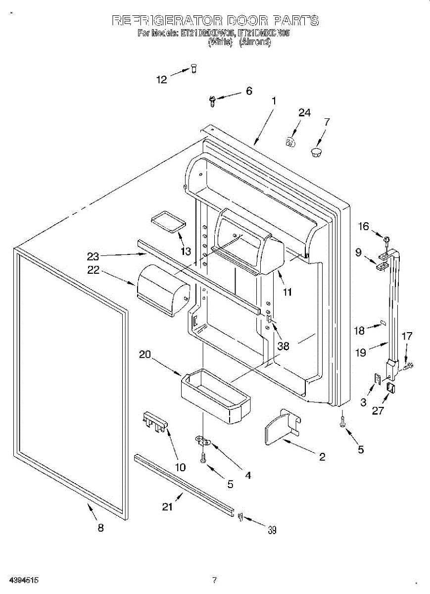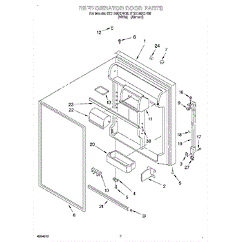 The Door Bin is an OEM replacement part for Whirlpool refrigerators. It is a removable plastic storage bin mounted inside the upper refrigerator door. This bin provides convenient access for eggs, condiments, and other small items with the door open.