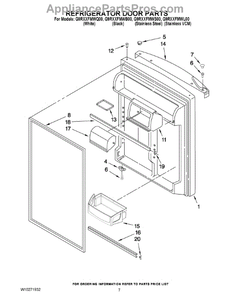 Parts for Whirlpool G9RXXFMWL00: 04 - Refrigerator Door Parts