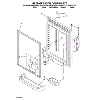 Replacement door bin for refrigerator door storage. Installs on inner door to hold condiments, jars, and bottles. Replaces cracked or broken bins.