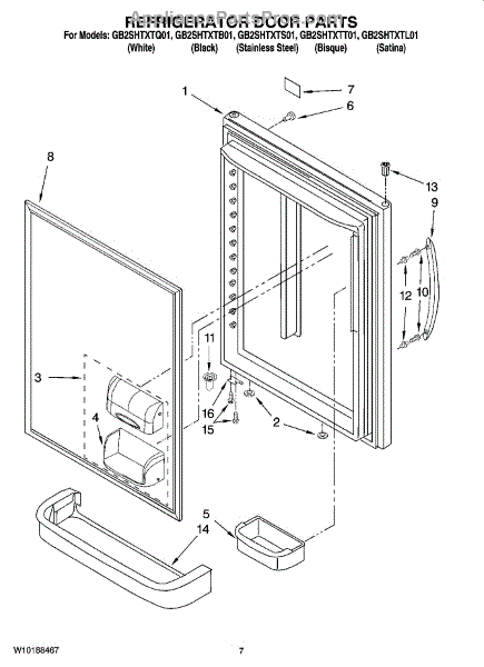 Refrigerator door gasket seals the fresh food compartment to maintain temperature. Replace if torn, cracked, or causing moisture buildup. Verify fit.