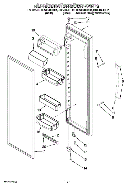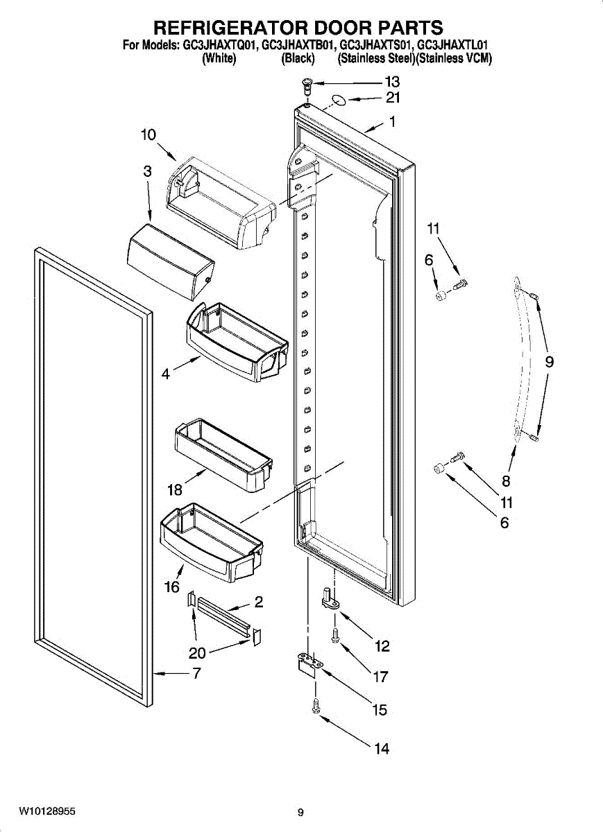Parts for Whirlpool GC3JHAXTL01: 06 - Refrigerator Door Parts