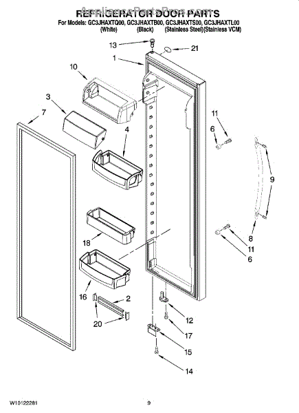 Parts for Whirlpool GC3JHAXTS00: 06 - Refrigerator Door Parts