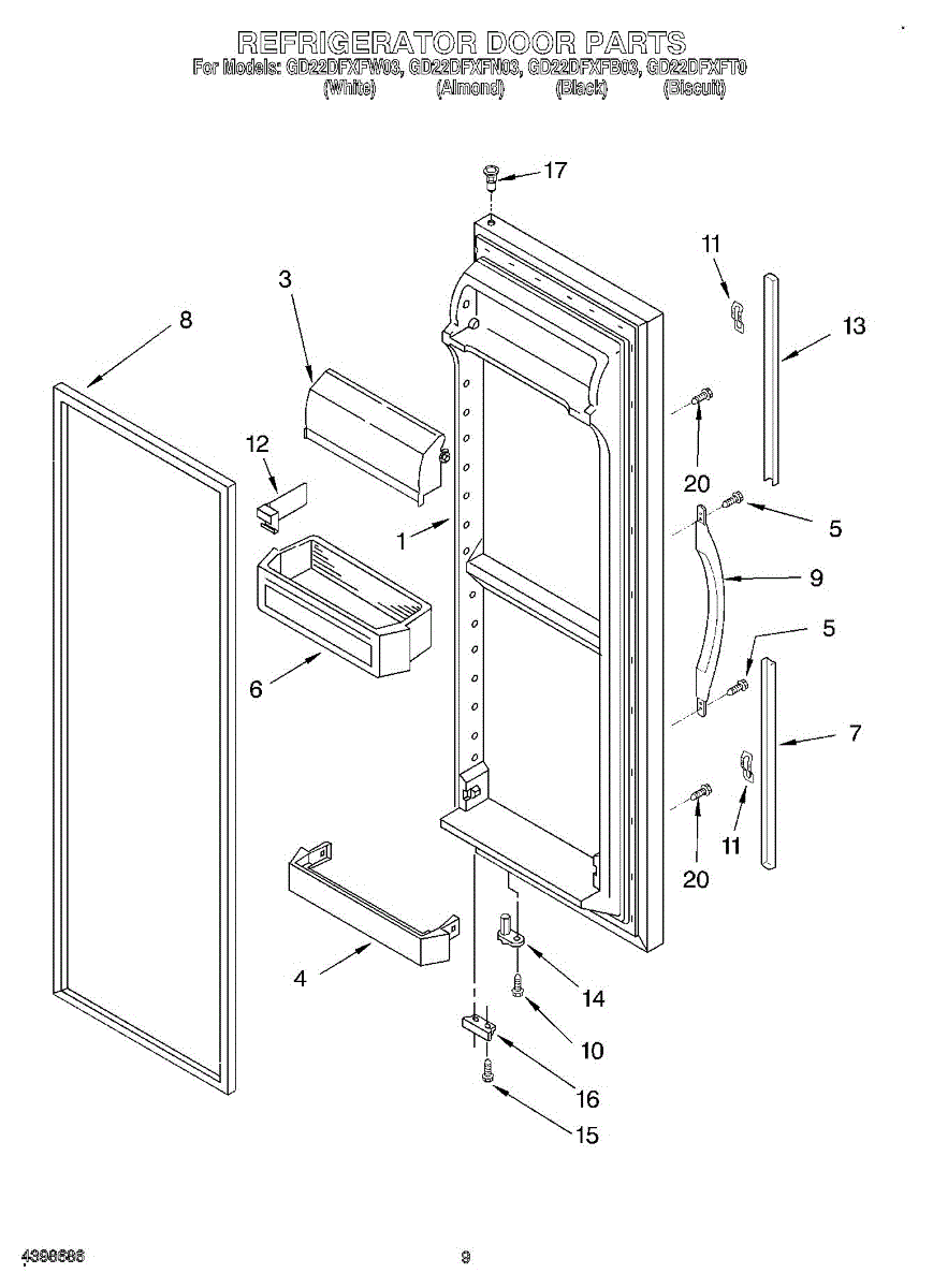 Parts for Whirlpool GD22DFXFN03: 07 - Refrigerator Door Parts